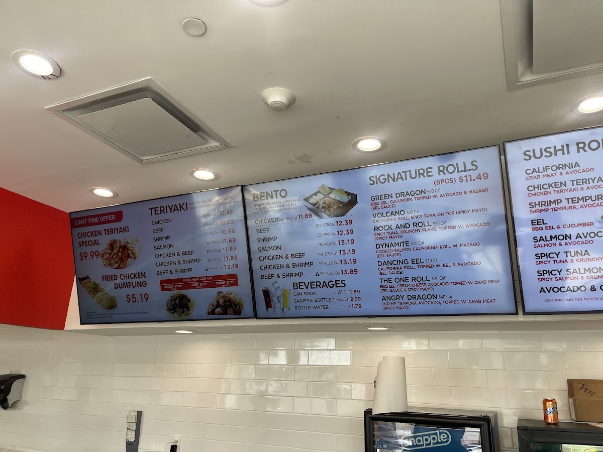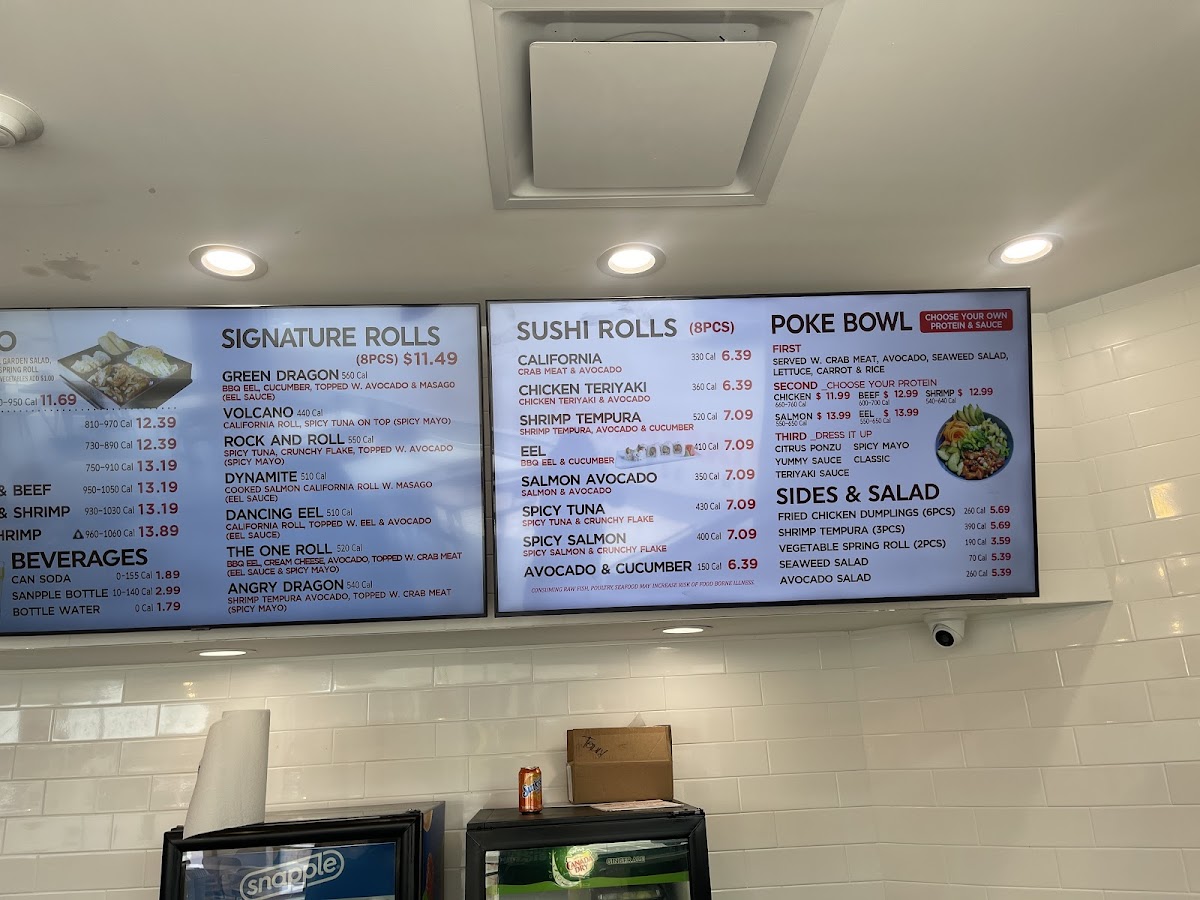 BBQ eel, cream cheese, avocado, topped with crab meat (eel sauce & spicy mayo) 520 cal.